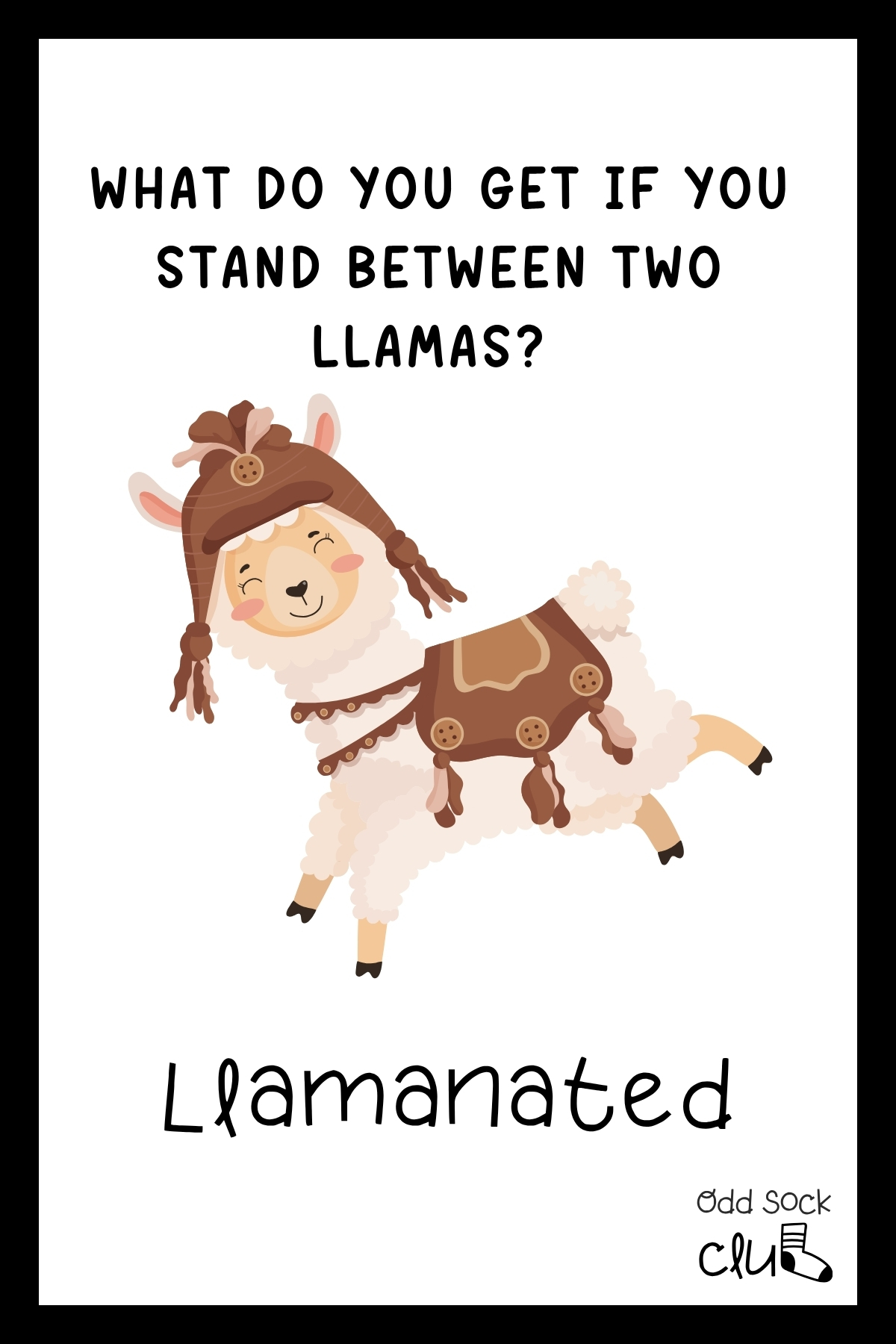 - What do you get if you stand between two llamas? Llamanated.