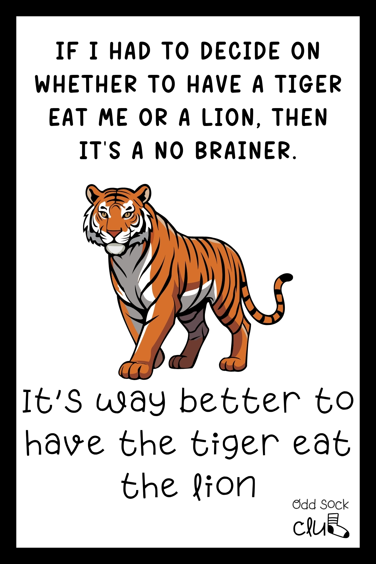 - If I had to decide on whether to have a tiger eat me or a lion, then it’s a no brainer. It’s way better to have the tiger eat the lion.